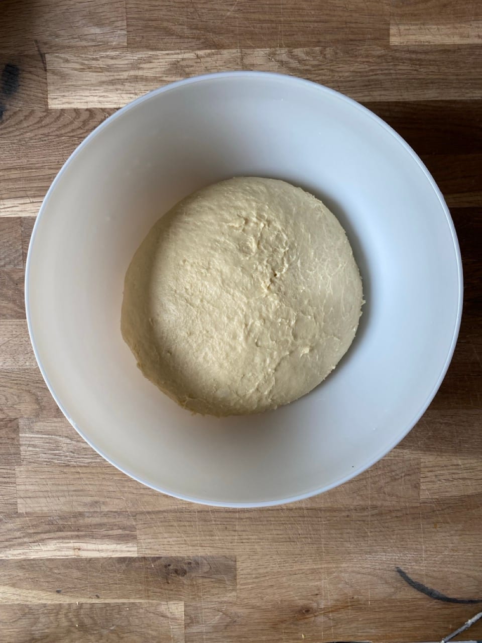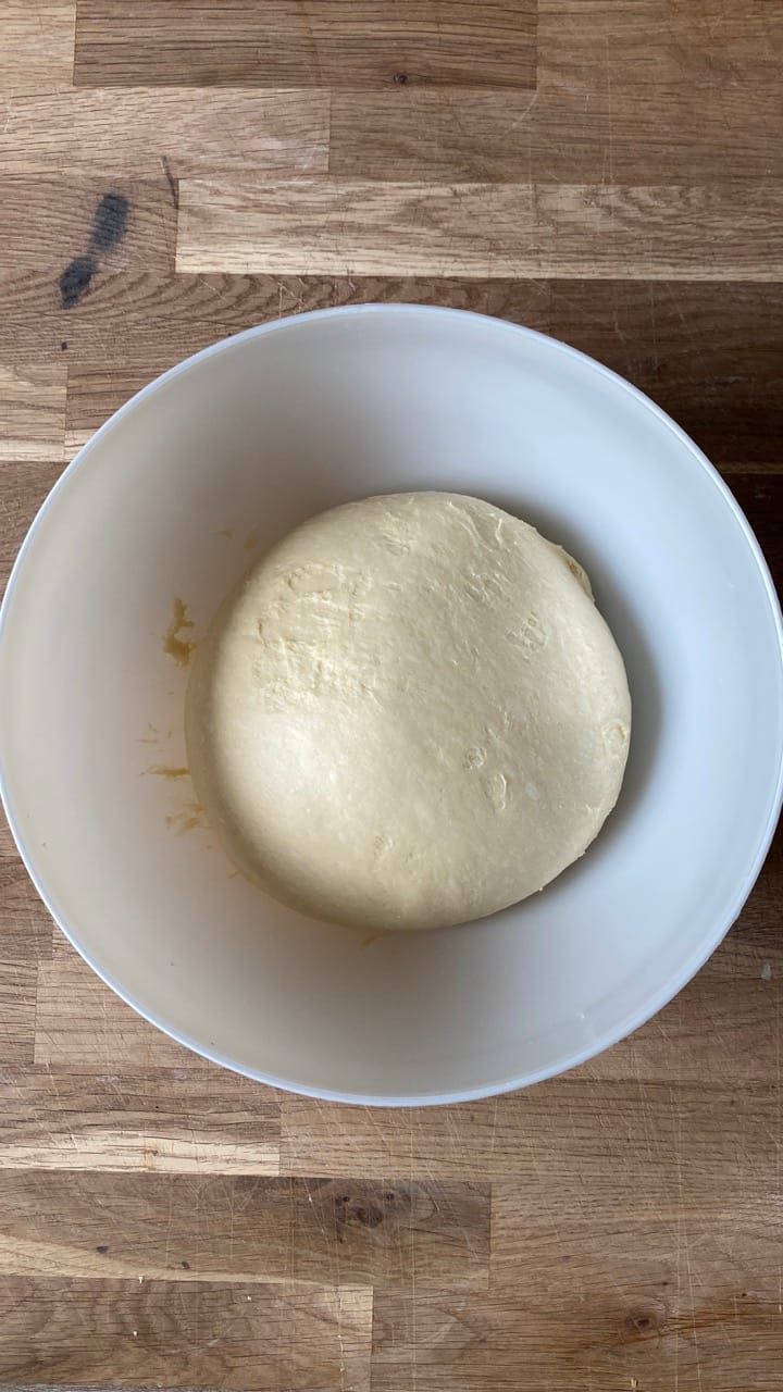 Gdy ciasto jest dobrze wyrobione przekładamy je do miski i zostawiamy na 1-1.5 godziny do podrośnięcia.